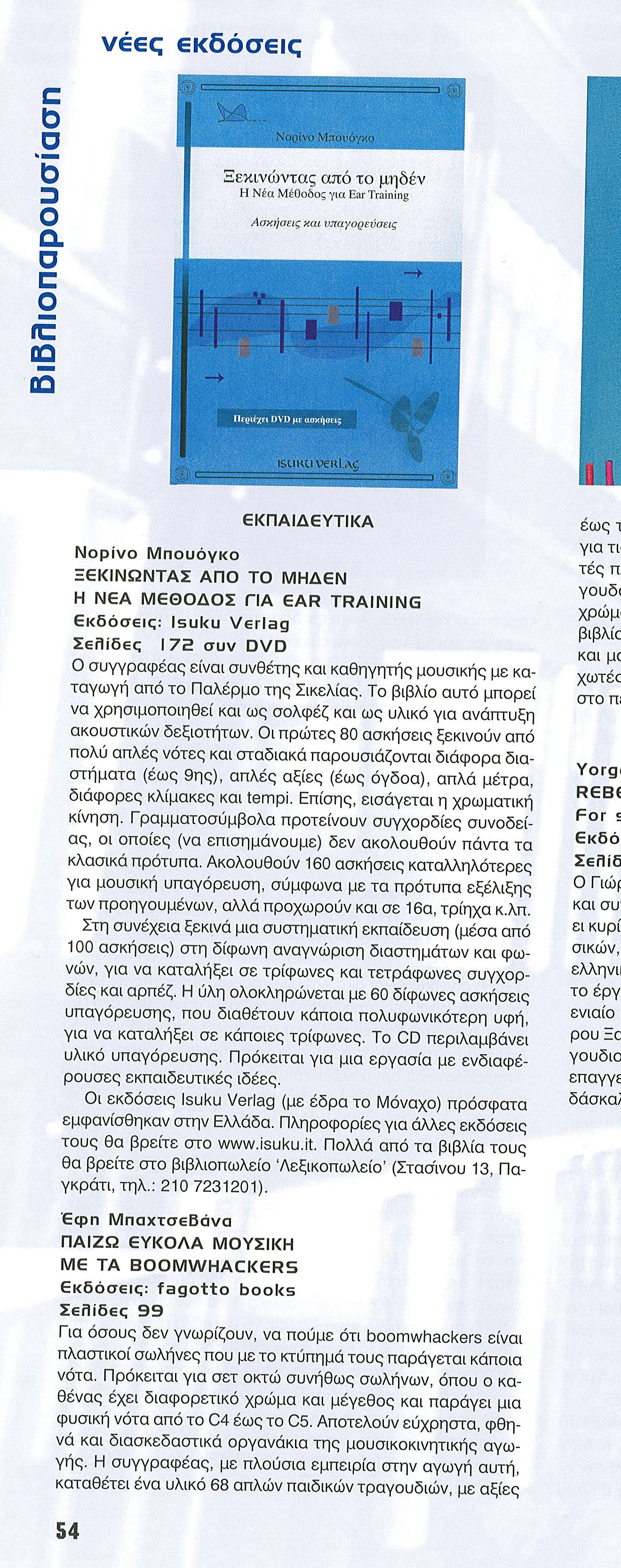 Το μουσικό περιοδικό "ΠΟΛΥΤΟΝΟ" παρουσιάζει το βιβλίο του Ιταλού Μουσικού Norino Buogo 'Ξεκινώντας από το μηδέν', κάνοντας μια λεπτομερή αναφορά στο περιεχομένο του βιβλίου αναλύοντας τη σταδιακή ανάπτυξη του επιπέδου δυσκολίας των ασκήσεων. Ευχαριστούμε τον κ. Λ. Κανάρη για τον χρόνο που διέθεσε να γνωρίσει το βιβλίο αλλά και την εκδοτική ISUKU.